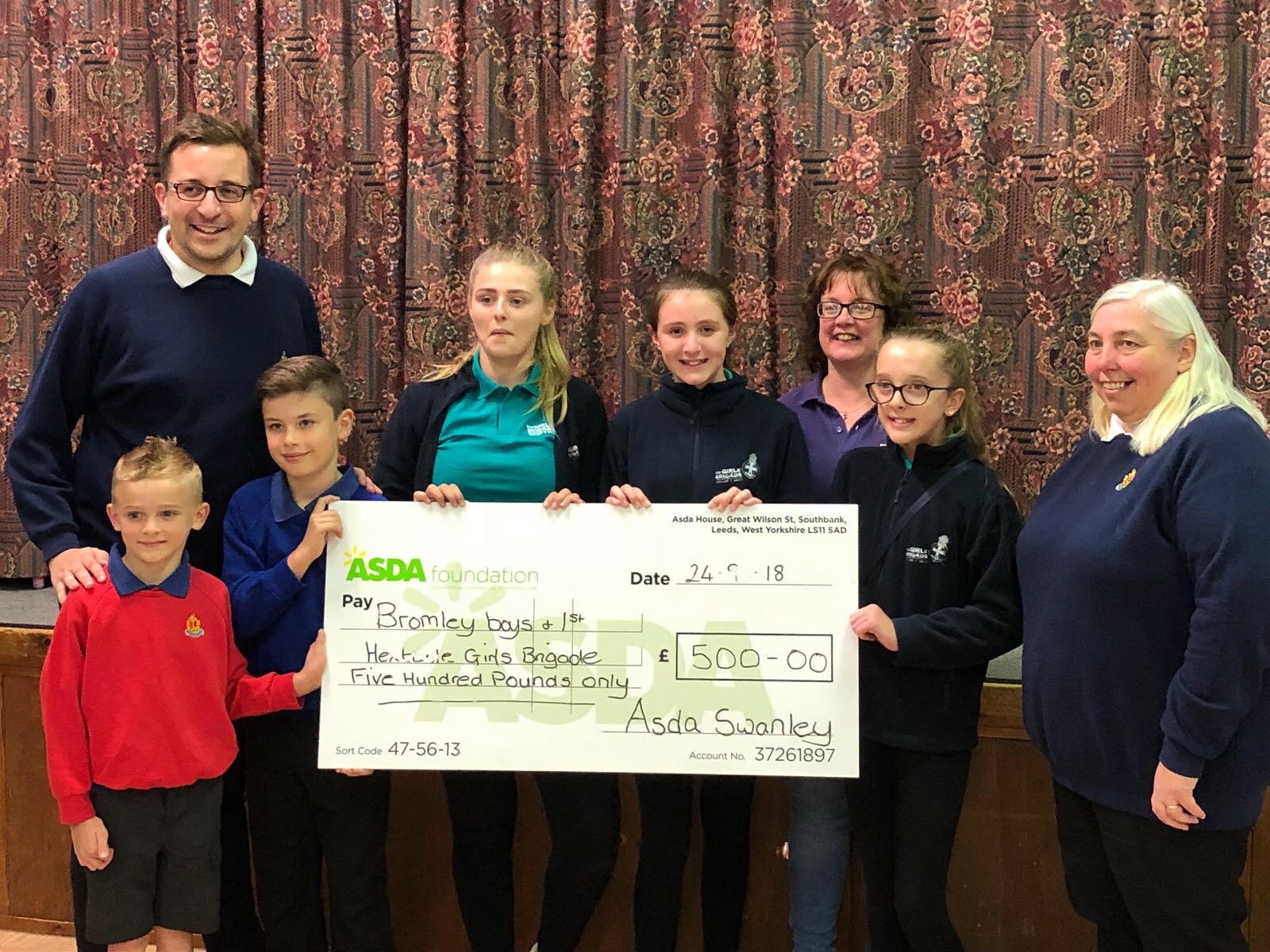 Last night the B.B. and G.B. were presented with a lovely cheque from ASDA. A big thank you to them and for those of you who collected the green tokens for us!