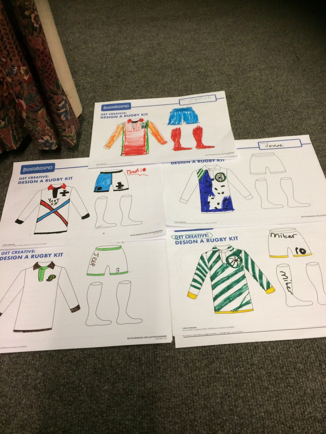 Juniors design rugby kits tonight during their Rugby World Cup evening #boysbrigade