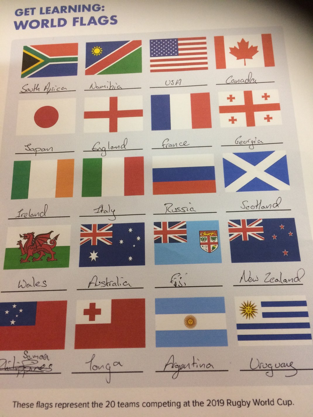 The flags of the 20 countries in the Rugby World Cup #boysbrigade