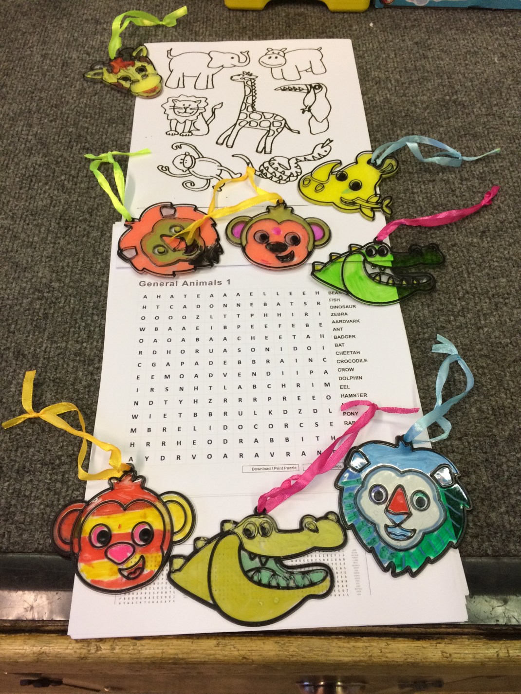 Glass painting, colouring and wordsearch