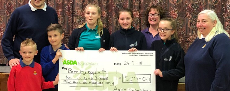 Last night the B.B. and G.B. were presented with a lovely cheque from ASDA. A big thank you to them and for those of you who collected the green tokens for us!